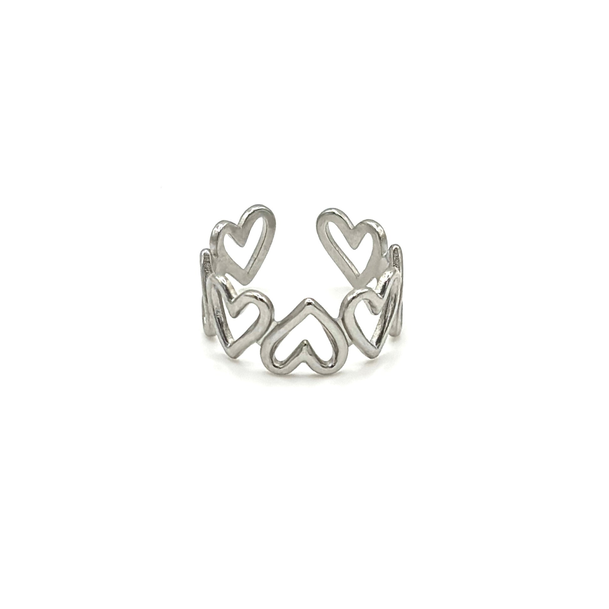 Setze ein stylisches Statement mit unserem verspielten Herzring! Dieses romantische Schmuckstück besticht durch sein filigranes Design aus aneinandergereihten, offenen Herzformen – erhältlich in edlem Silber- oder glänzendem Gold-Finish. Der Ring ist größenverstellbar und passt sich angenehm jeder Fingergröße an. Ideal als Geschenk für einen lieben Menschen – oder als besonderes Accessoire für dich selbst. 💛
